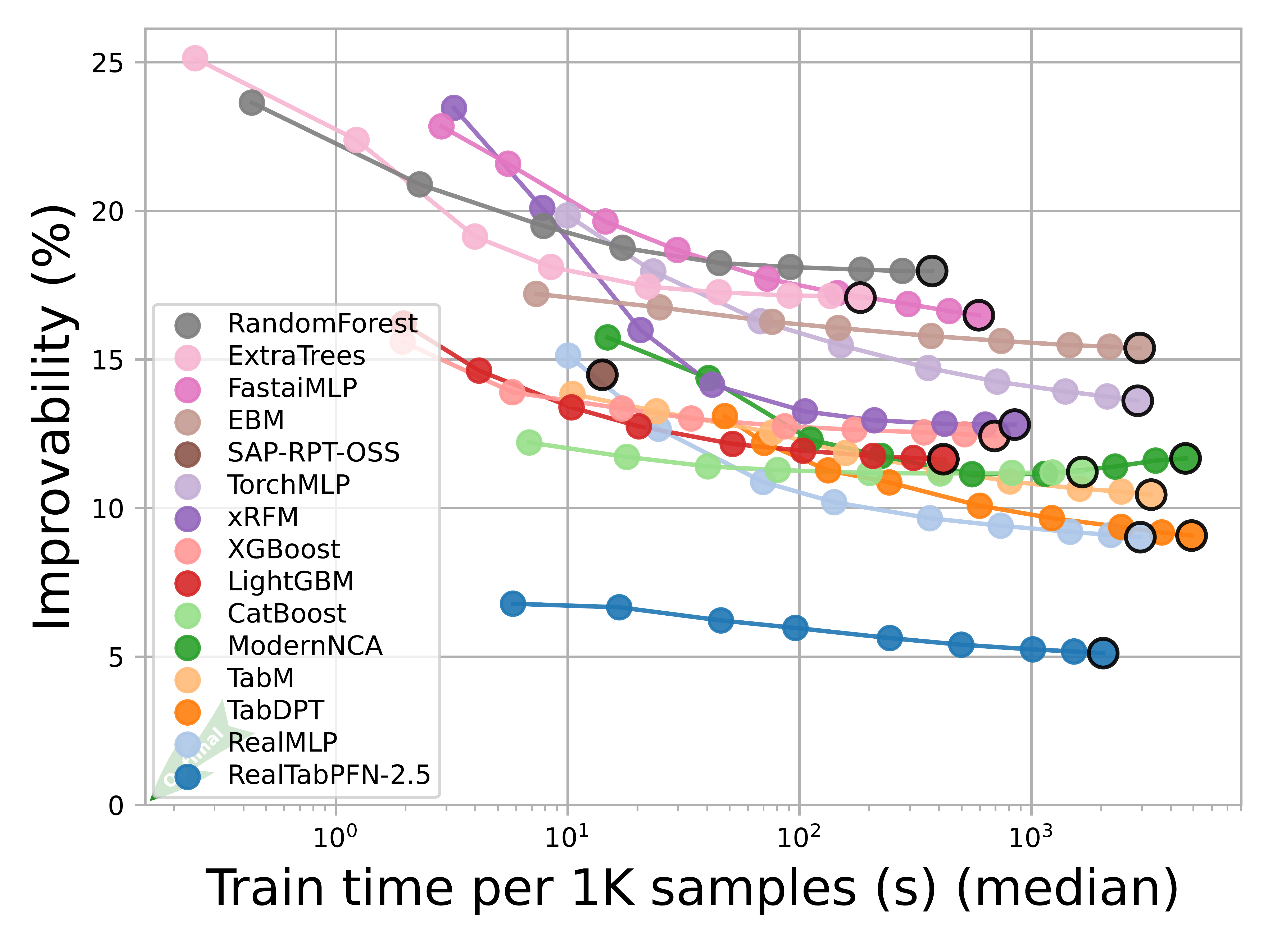 Figure 5: Improvability vs. Train Time (TabArena Early 2026)